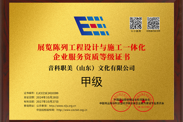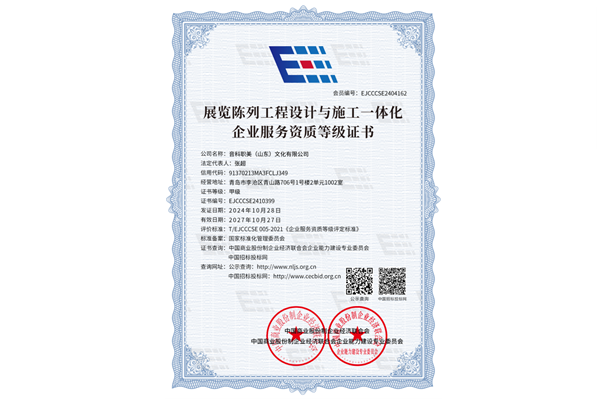 展览陈列工程设计与施工一体化企业服务资质等级证书