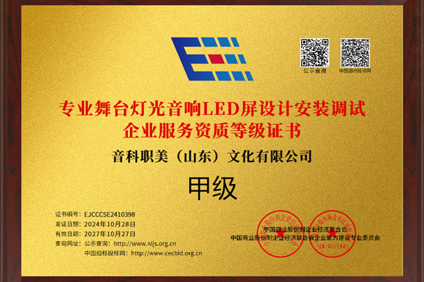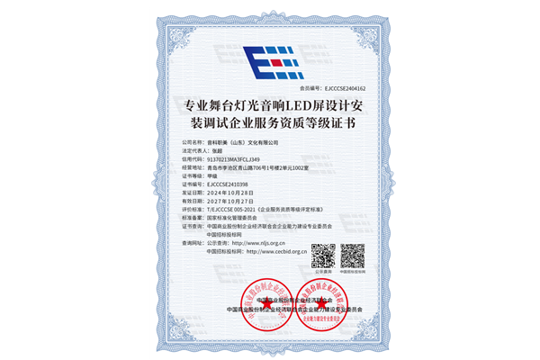 专业舞台灯光音响LED屏设计安装调试企业服务资质等级证书